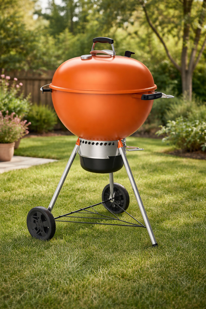 La barbacoa de carbón Master-Touch de 57 cm combina el estilo clásico Weber con un exclusivo y elegante acabado en color naranja. Incorpora rejilla de acero inoxidable abisagrada compatible con Gourmet BBQ System, termómetro integrado y reguladores ajustables para un control preciso del calor. Su sistema de limpieza One-Touch, el soporte para tapa Tuck-Away y sus ruedas resistentes la convierten en un clásico duradero, práctico y perfecto para disfrutar del auténtico sabor a la brasa.