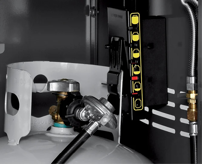 El indicador de fácil lectura situado junto a la bombona de gas te permite ver cuánto combustible queda en ella.