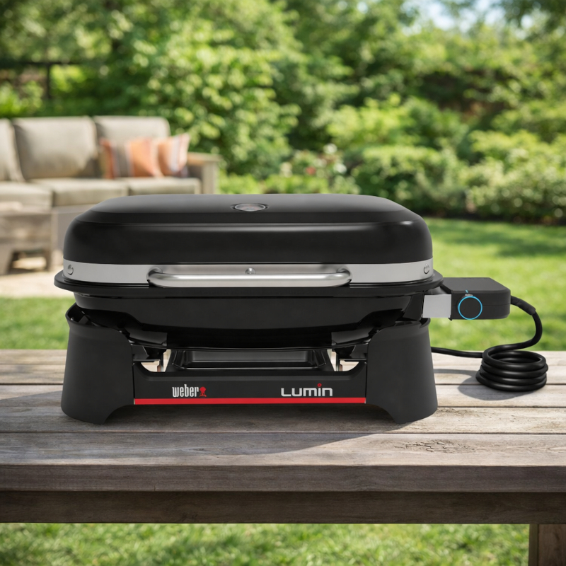 La barbacoa eléctrica para exteriores Lumin combina potencia, versatilidad y diseño en un formato compacto ideal para patios y jardines. Solo tienes que enchufarla para alcanzar temperaturas de hasta 315 °C en apenas 15 minutos, logrando un sellado perfecto y auténticas marcas de parrilla en carnes, pescados y mariscos.