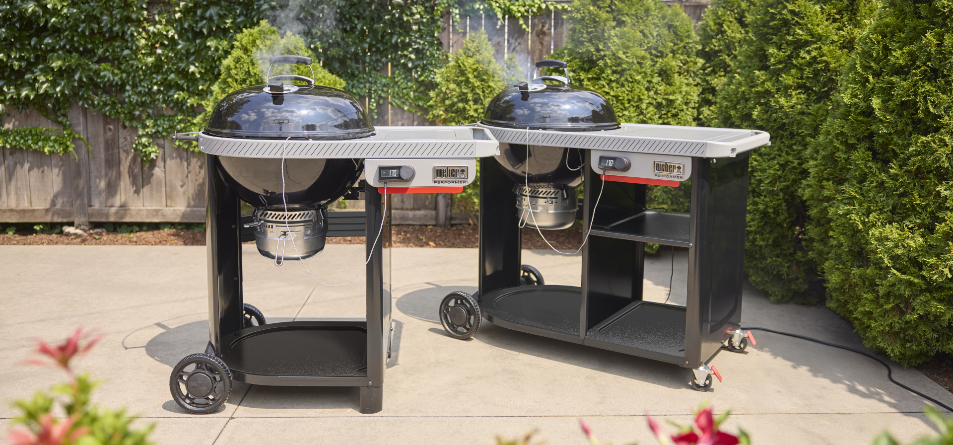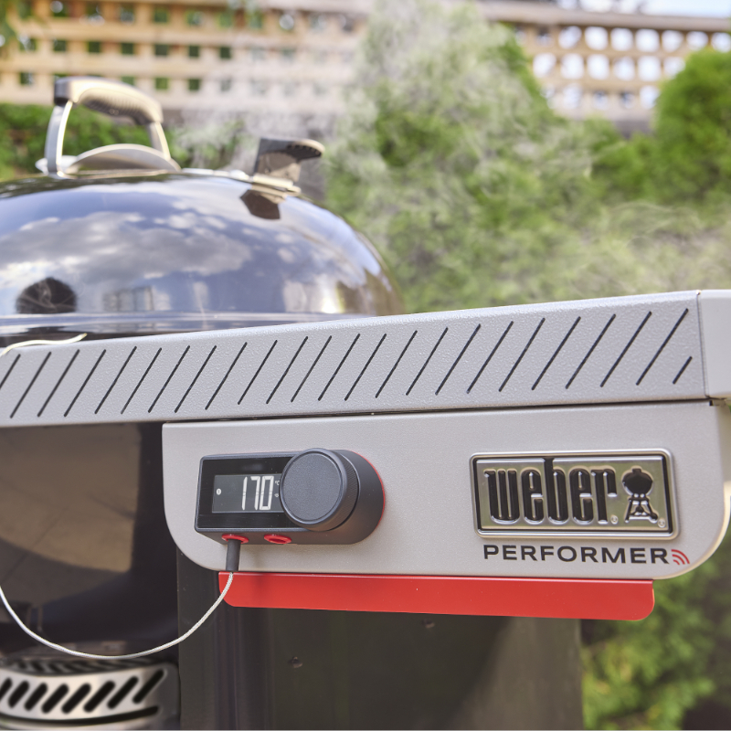La barbacoa de carbón inteligente Performer Premium de 57 cm combina el auténtico sabor de la brasa con la innovación tecnológica más avanzada. Gracias a su controlador LCD con Wi-Fi®, podrás alcanzar, mantener y ajustar la temperatura con total precisión mediante un ventilador digital que regula el flujo de aire sobre las brasas, lo que la convierte en una opción ideal para cocciones largas y ahumados nocturnos.
