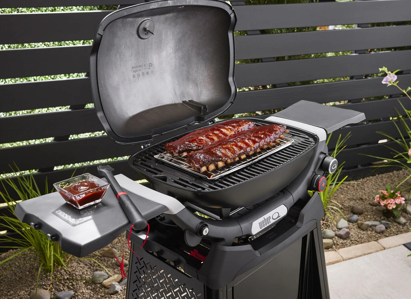 El modelo Weber Q 1200N incorpora dos mesas laterales y soporte compacto con cuatro patas, es perfecta para colocar en terrazas, balcones o cualquier espacio reducido.