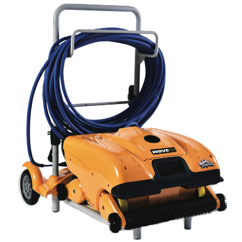El Dolphin Wave 150 incluye carro de transporte, cable de 42 m y está diseñado para piscinas enterradas de diferentes formas como rectangulares, riñón o de forma libre. Todo ello lo convierte en una solución fiable, potente y duradera para el mantenimiento profesional de piscinas