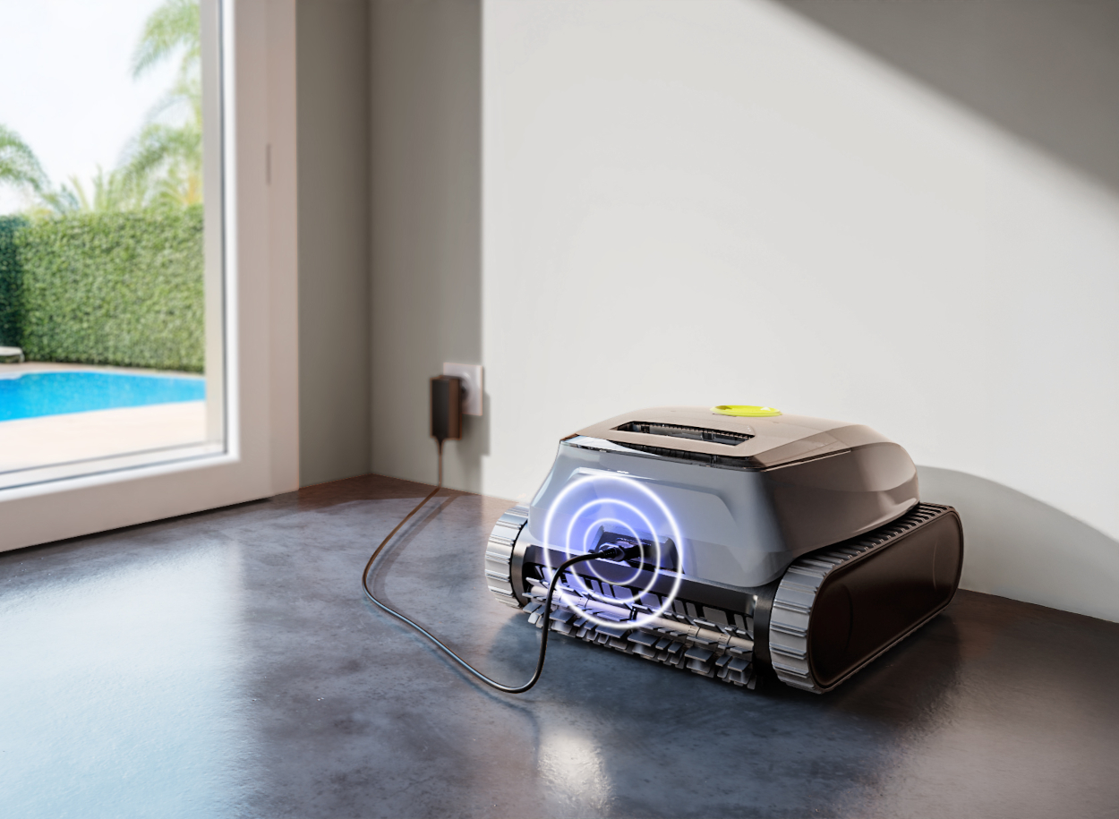 Una vez finalizada la limpieza, el robot puede recargarse fácilmente fuera del agua, preparándose para el siguiente uso. Este sistema asegura un mantenimiento sencillo y una mayor comodidad para el usuario, manteniendo el equipo siempre listo para la próxima limpieza.