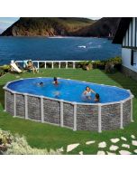 Gre Pacific model steel wall-mounted removable pool with wood look and round shape. Includes cartridge purifier and safety ladder 2x3 steps gray color.
